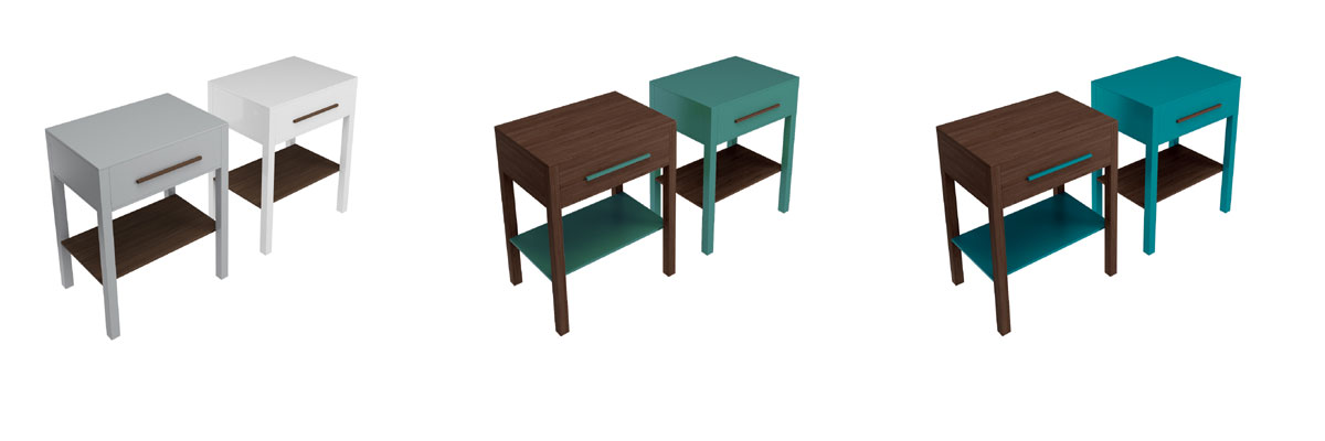 Szafka dostępna w kolorach: biały/dąb, szary/dąb, zielony/dąb, niebieski/dąb