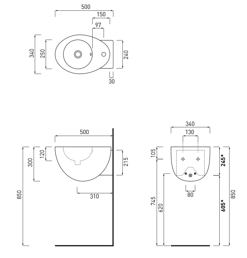 Umywalka ścienna.