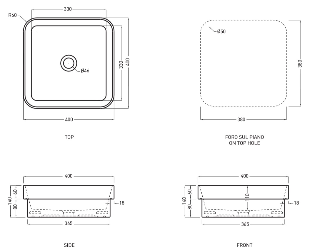 Cielo Enjoy Umywalka kwadratowa 40x40cm, stawiana na blat Biały EJLASIQ