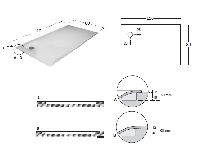 Możliwość montażu na podłodze (A) bądź wpuszczonego w podłogę (B).