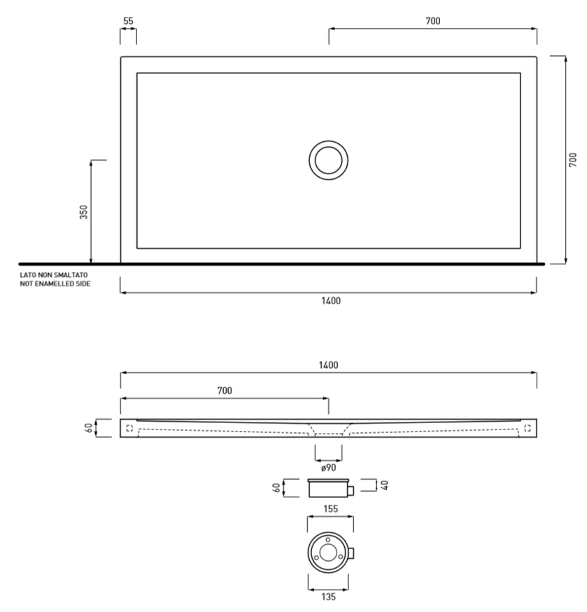 Cielo Sessanta Brodzik prostokątny 70x140cm Biały PD670140