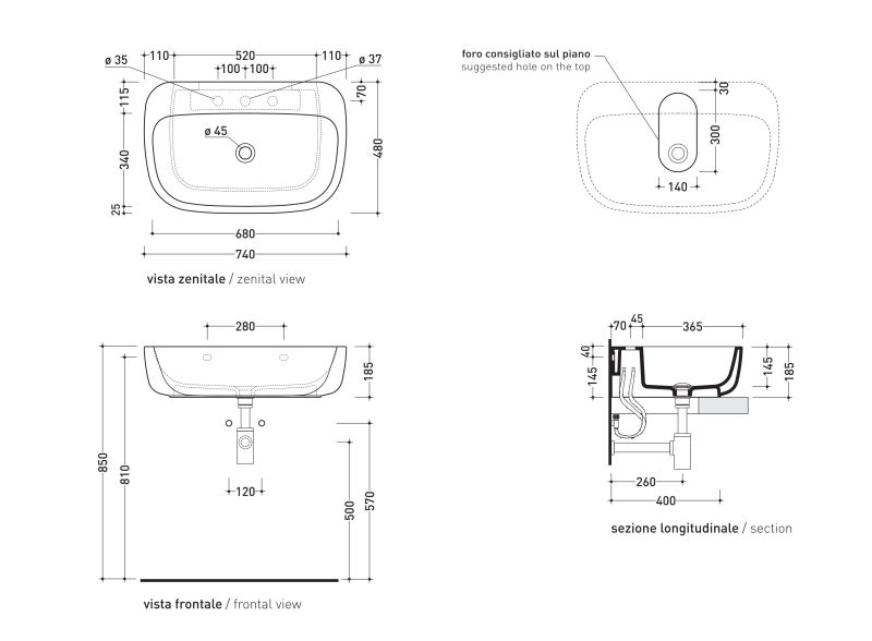 Flaminia Mono Umywalka ścienna 74x48 cm Biały MN74L