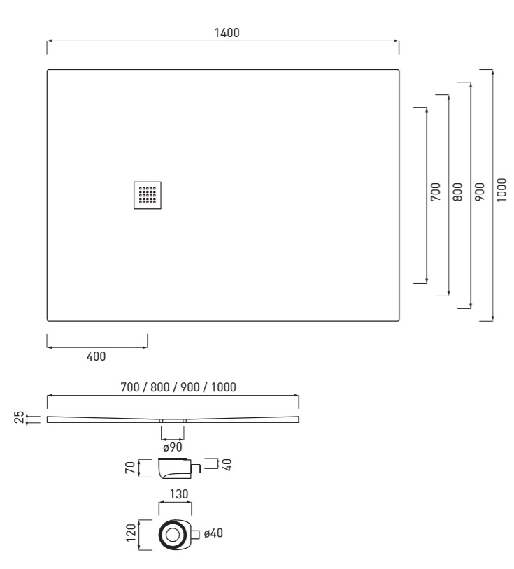 Cielo Venticinque Brodzik prostokątny 70x140cm Biały PDR14070