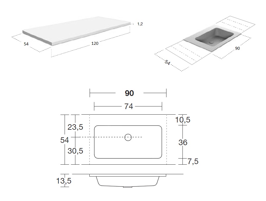 Antonio Lupi Arco Umywalka Zintegrowana z Blatem 54x120 cm biała CR154/ARCO90