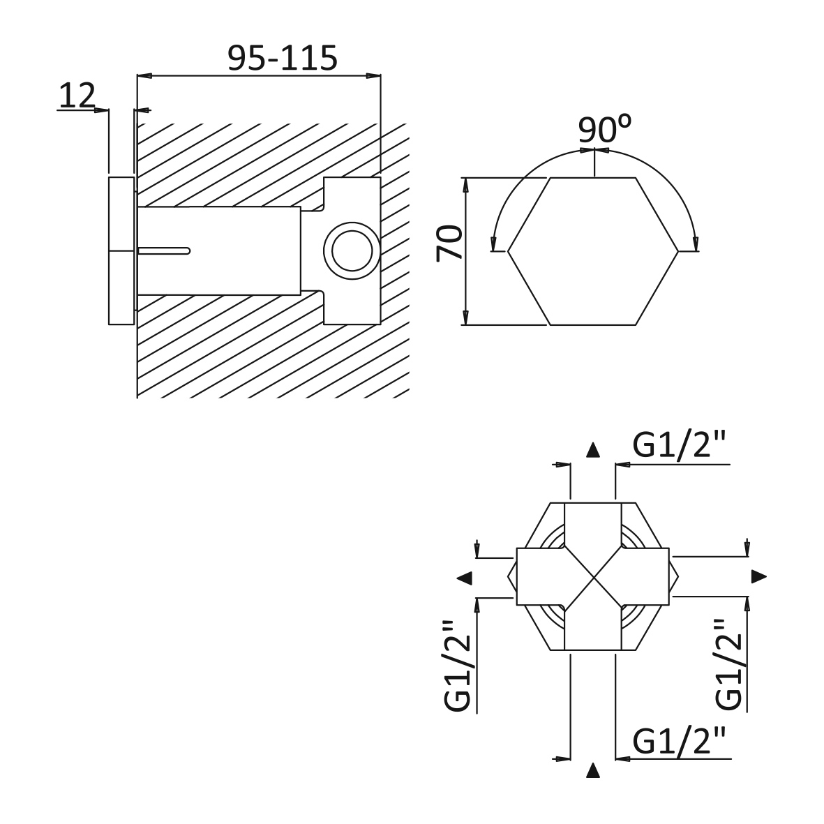 Przełącznik 3-drożny, podtynkowy z elementem montażowym podtynkowym w komplecie.