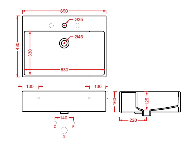 Artceram Quadro Umywalka stawiana na blat/ścienna 65x48 cm Biała QUL00301;00