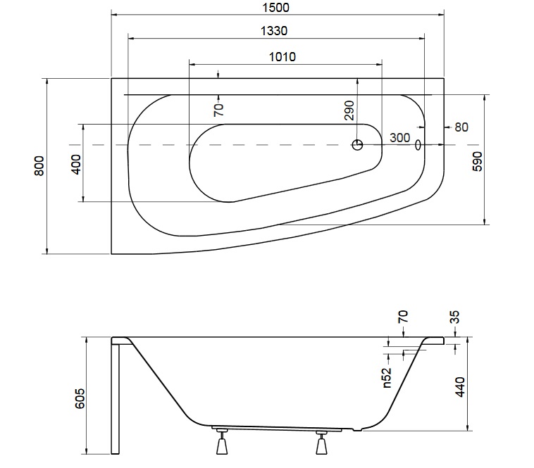 Besco Luna Wanna asymetryczna Lewa 150x80 biała WAL-150-NL