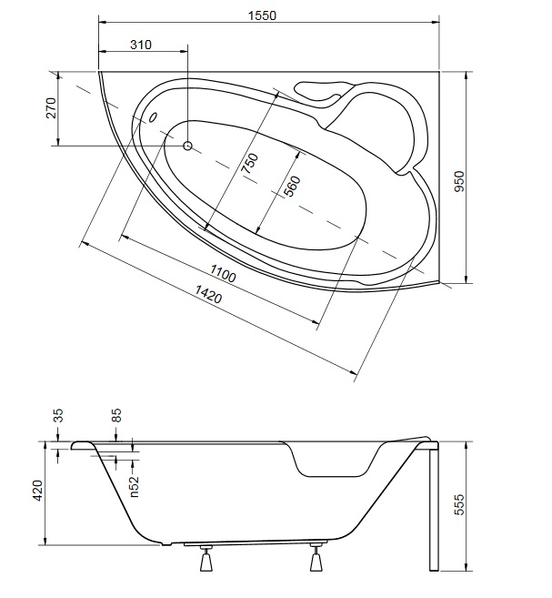 Besco Finezja Nova Wanna asymetryczna Prawa 155x95 biała WAF-155-NP