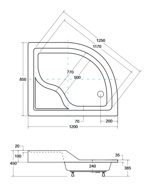 Besco Maxi Brodzik Asymetryczny Prawy 120x85 BAM-120-NP
