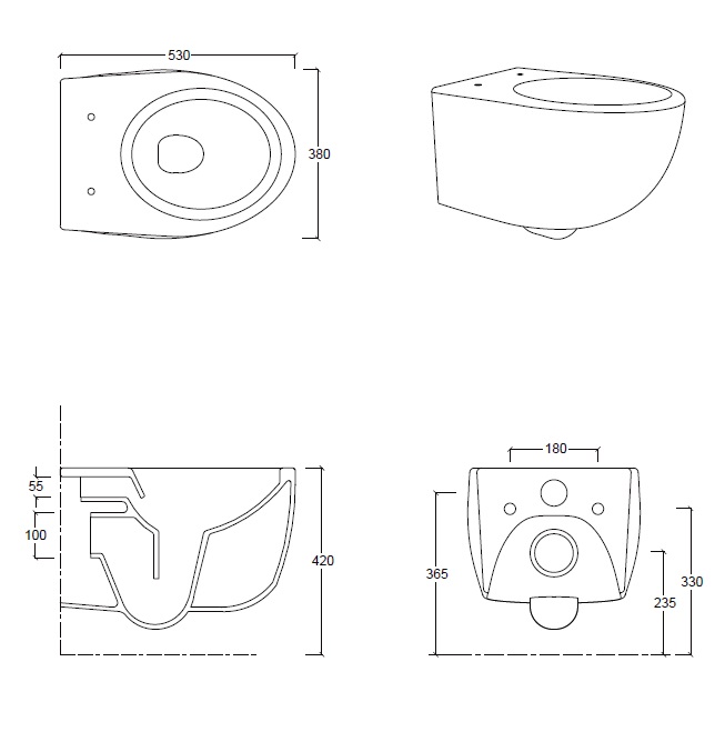 Esedra Bull WC Wiszący NO-RIM 53x36 cm ghiaccio GHWCSBLR