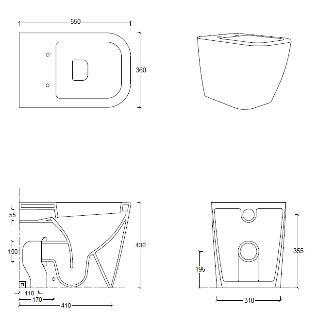 Esedra Quadra WC Stojący 55x36 cm grafite MBWCQD