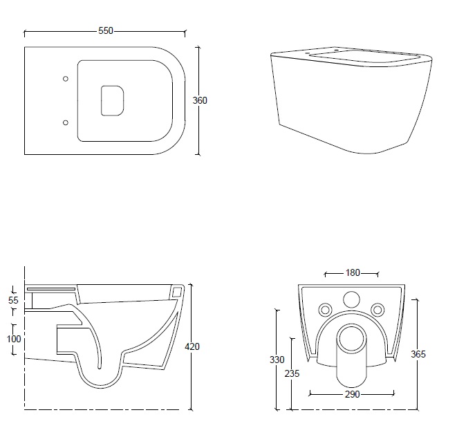 Esedra Quadra WC Wiszący NO-RIM 54x36 cm grafite MBWCSQDR