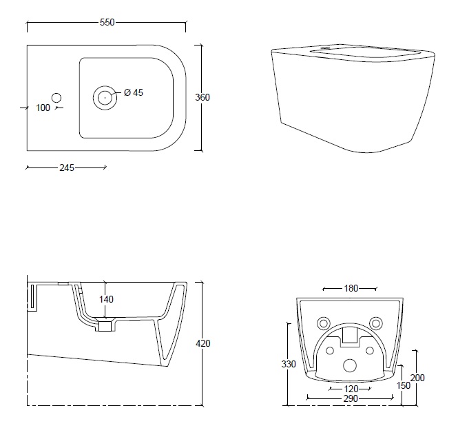Esedra Quadra Bidet Wiszący 36x54 cm magnesio MGBDSQD