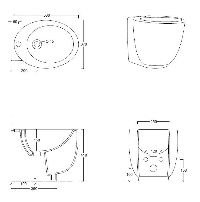 Esedra Fly Bidet Stojący 38x53 cm biały BDTFY