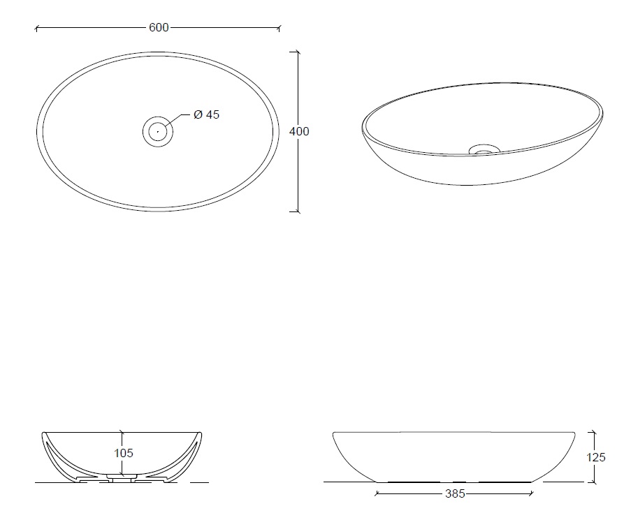 Esedra Flat 2 Umywalka Stawiana na Blat 60x40 cm sabbia SALVF2