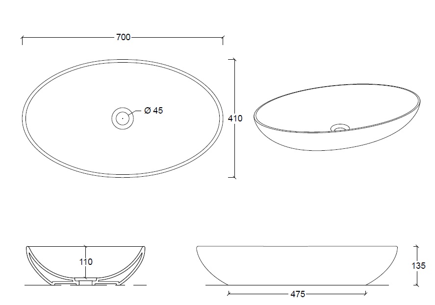 Esedra Flat 3 Umywalka Stawiana na Blat 70x41 cm biała LVF3