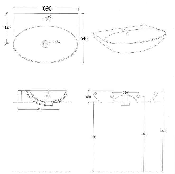 Esedra Flat 4 Umywalka Stawiana na Blat/Ścienna 69x54 cm biała LVF4