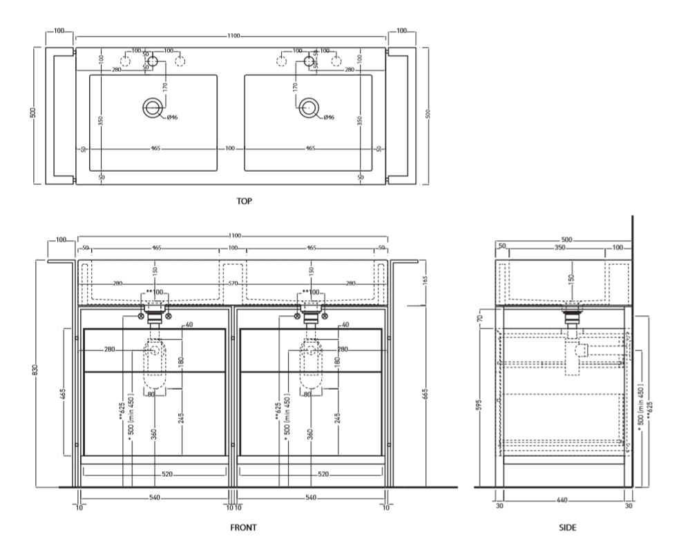Cielo Narciso Doppio Stelaż pod umywalkę podwójną Czarny mat NASTDMT