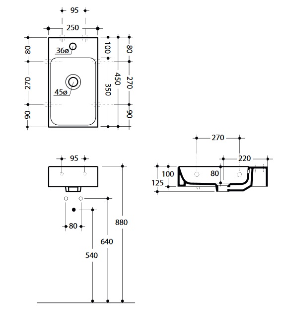 Kerasan Cento Umywalka Ścienna Prawa 45x25 cm Biały 353701R