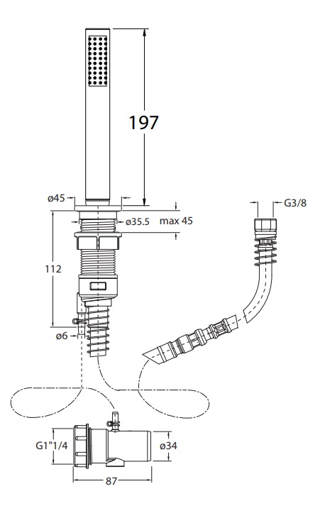 Crosswater MPRO Follow Me Słuchawka z wężem i odpływem na brzeg wanny brushed brass PRO812F