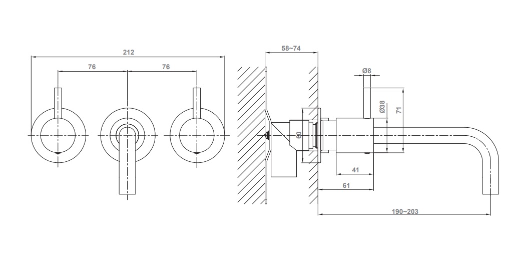 Bateria z elementem podtynkowym w komplecie, bez korka