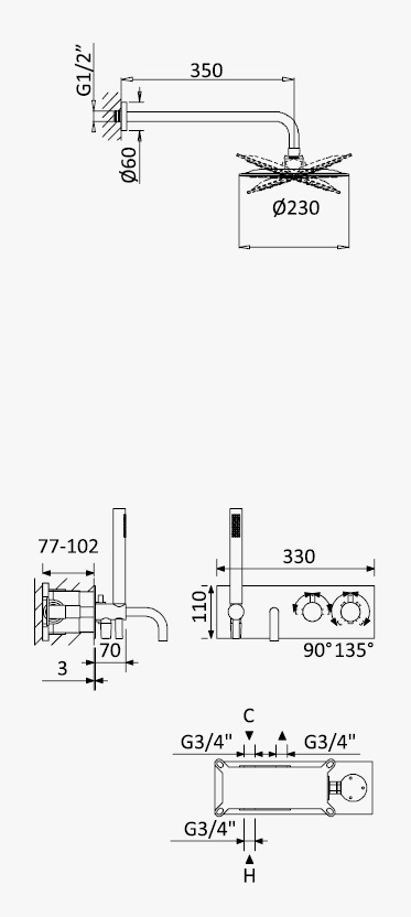 Bruma Elo Zestaw wannowo-natryskowy termostatyczny podtynkowy z deszczownicą Ø 230mm ścienną Chrom 1383101CR