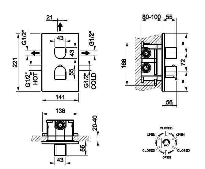 Gessi Rilievo Bateria prysznicowa termostatyczna ścienna element zewnętrzny chrom 59136.031