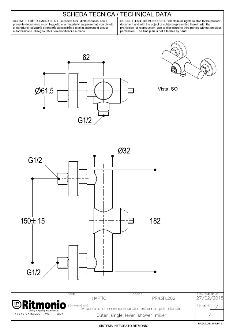 Ritmonio Taormina Bateria natryskowa ścienna chrom PR43FL202CRL