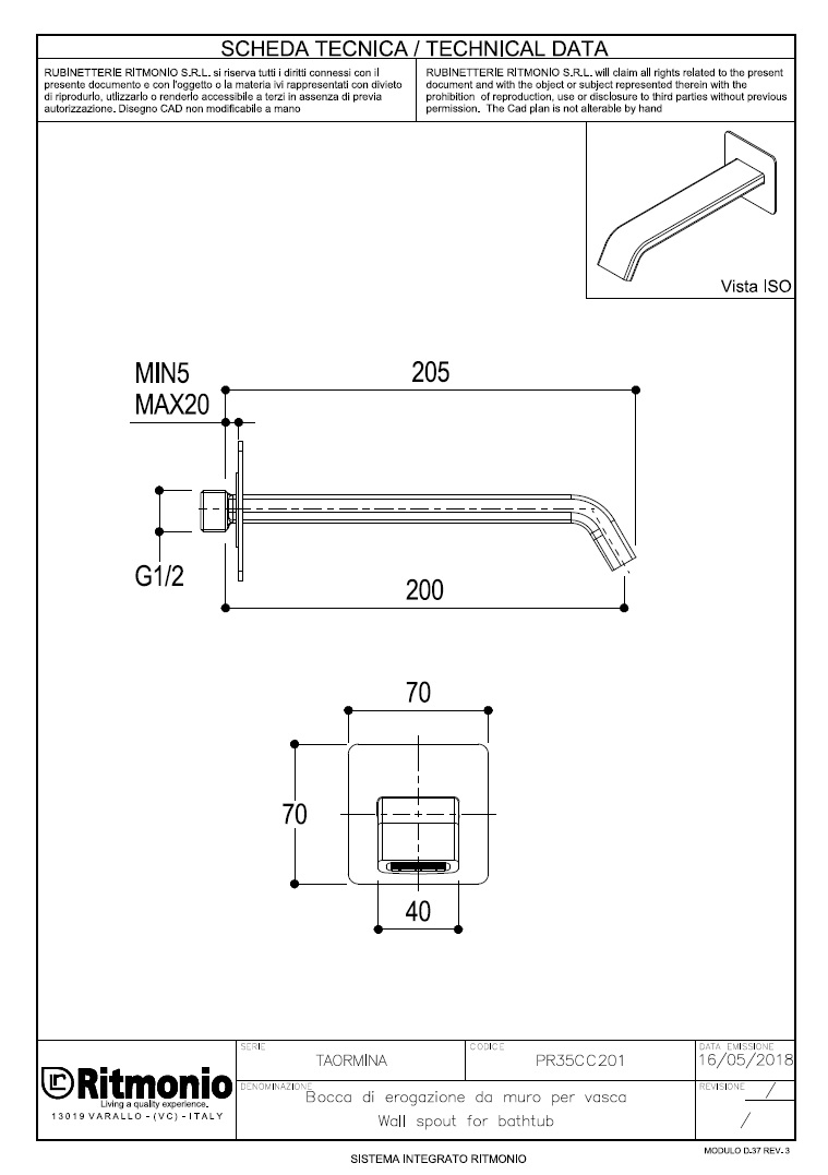 Ritmonio Taormina Wylewka wannowa ścienna chrom PR35CC201CRL