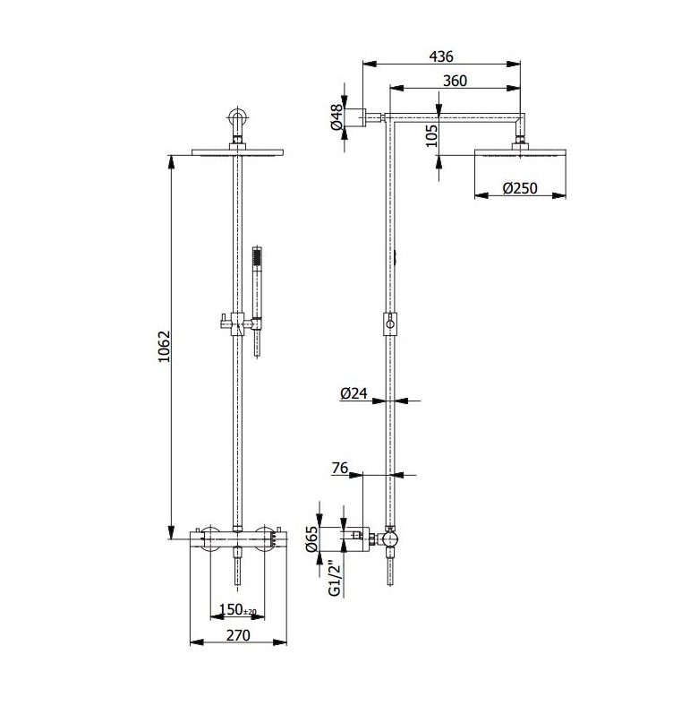 Zestaw zawiera baterię termostatyczną, deszczowicę ABS, drążek ścienny, wąż i słuchawkę.