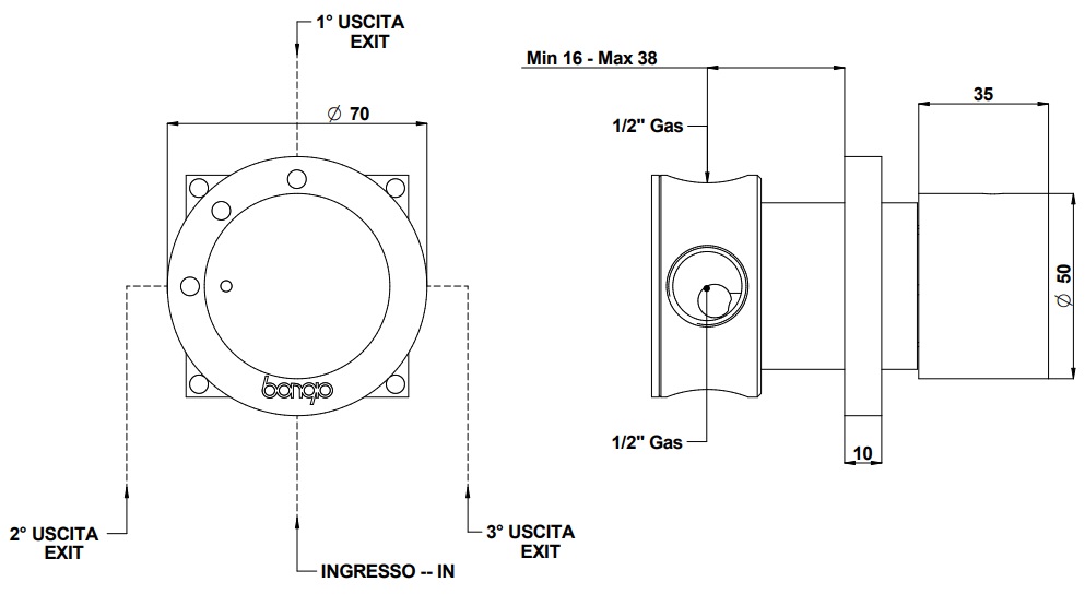 Bongio Time2020 Wood Przełącznik 3-drożny podtynkowy brushed stainless steel 69525AS03
