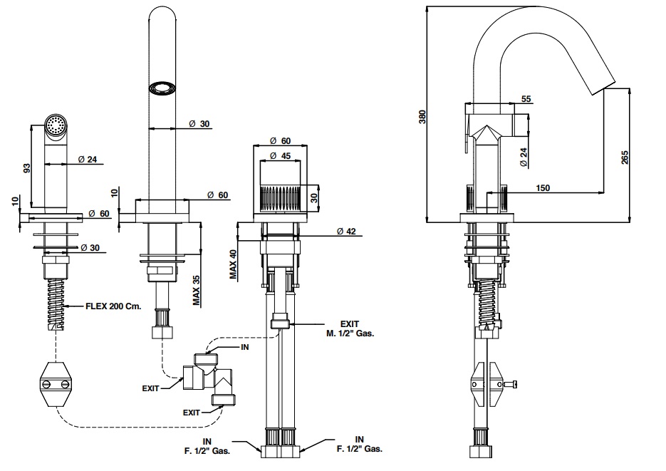 Bongio Time2020 Kitchen Bateria kuchenna 3-otworowa brushed stainless steel 70590AS00