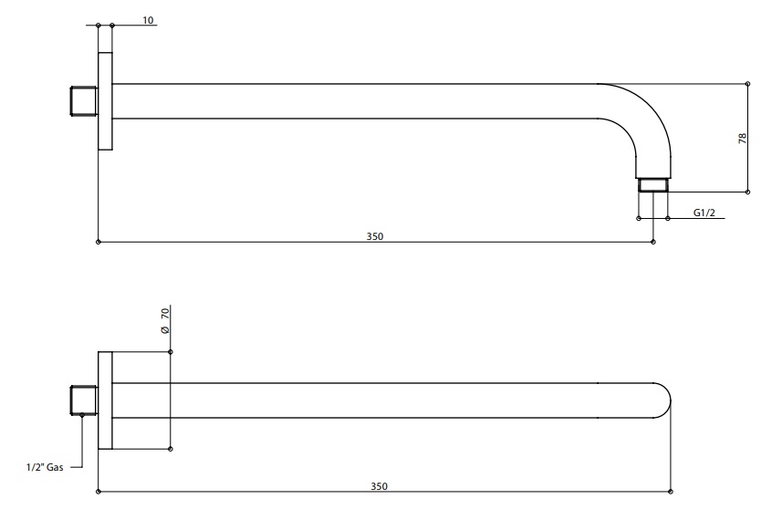 Bongio Time2020 Wellness Ramię ścienne do deszczownicy 350 mm brushed stainless steel 70802AS35