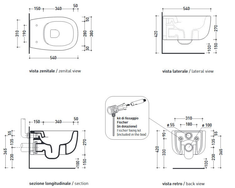 Flaminia Bonola Miska bezrantowa z deską wolnoopadającą 54x38 biały mat BN118GLAT+BNCW03LAT
