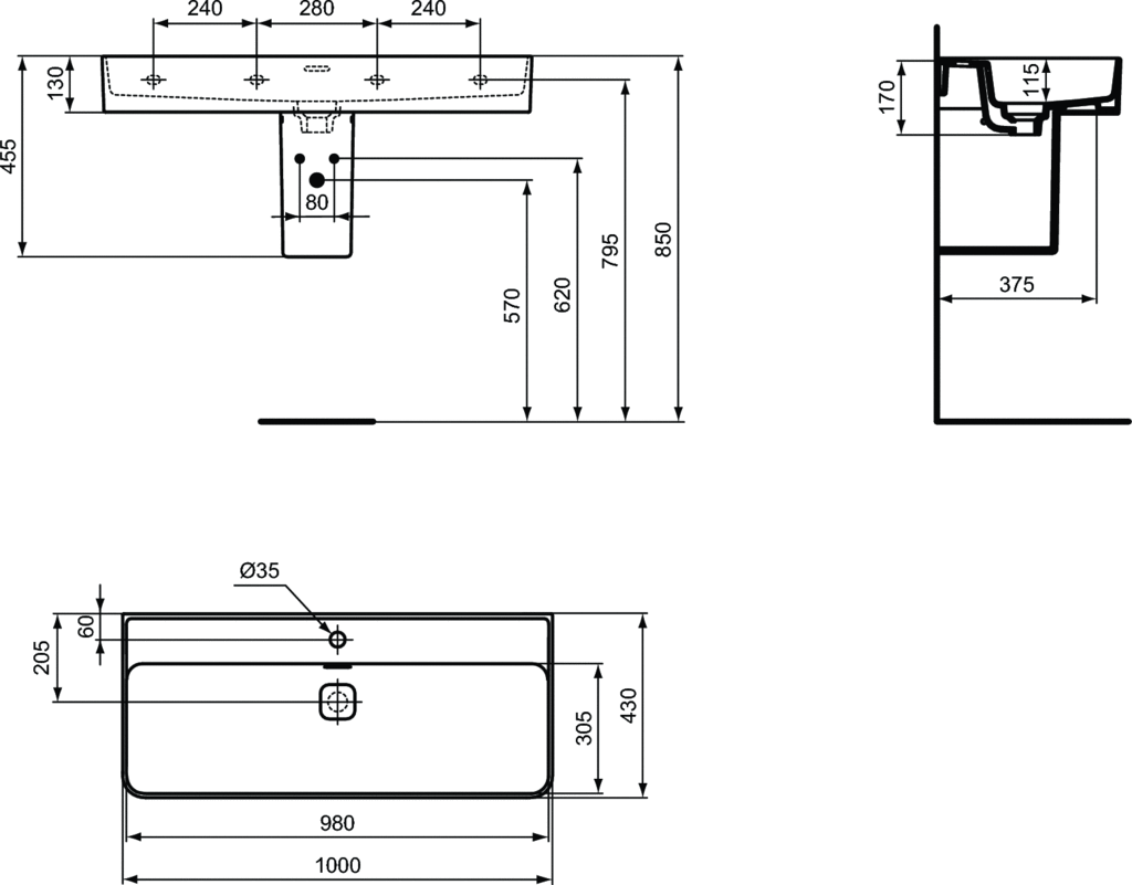 Ideal Standard Strada II Basin Umywalka ścienna 100x43 cm prostokątna biała T300201