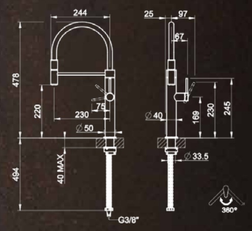 Kolor gumowego wężyka/wylewki: Czarny matowy (RAL 9005)