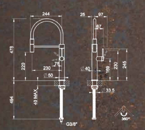 Gessi 316 Bateria kuchenna jednouchwytowa 1-otworowa Steel Brushed 60012.239