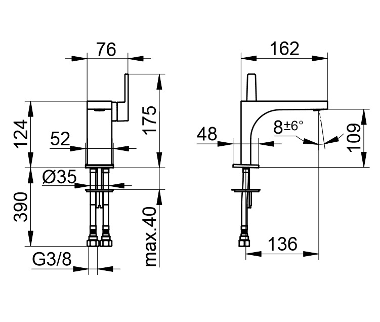 2 węże doprowadzeniowe 435 mm G 3/8 cala