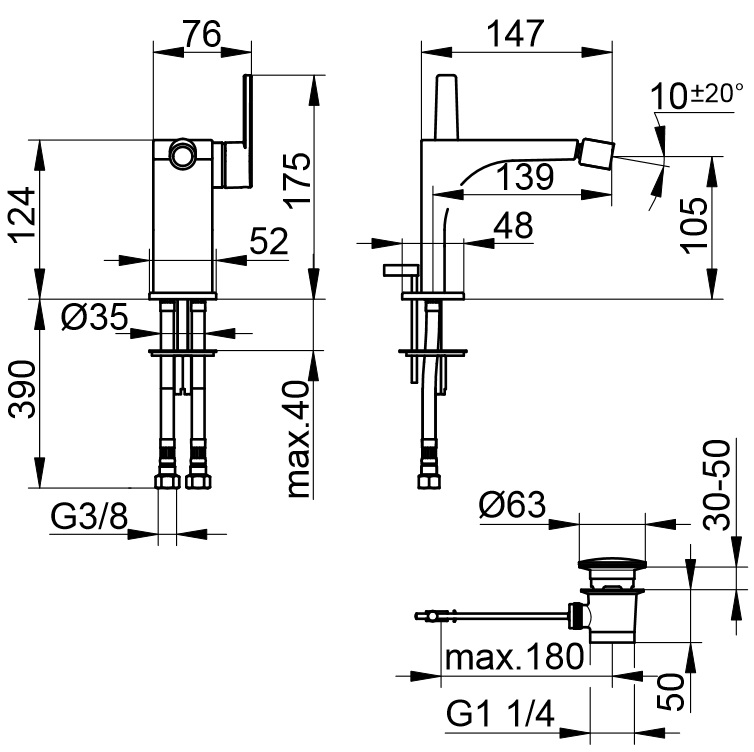 Z korkiem i systemem odpływowym 1 1/4 cala
