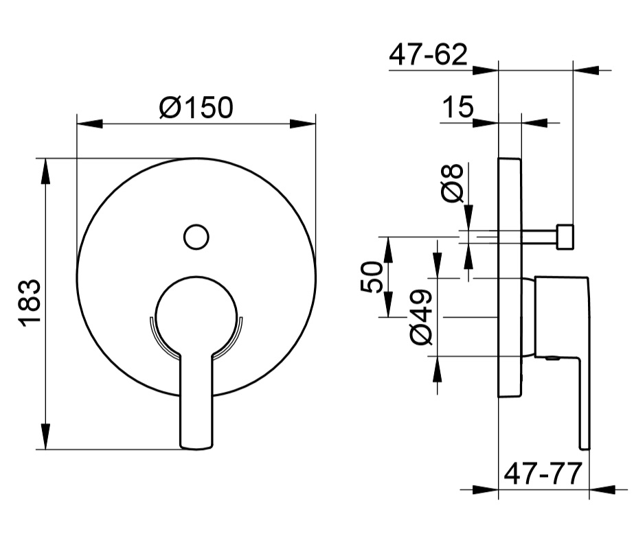 wysięg od ściany: 47-77 mm