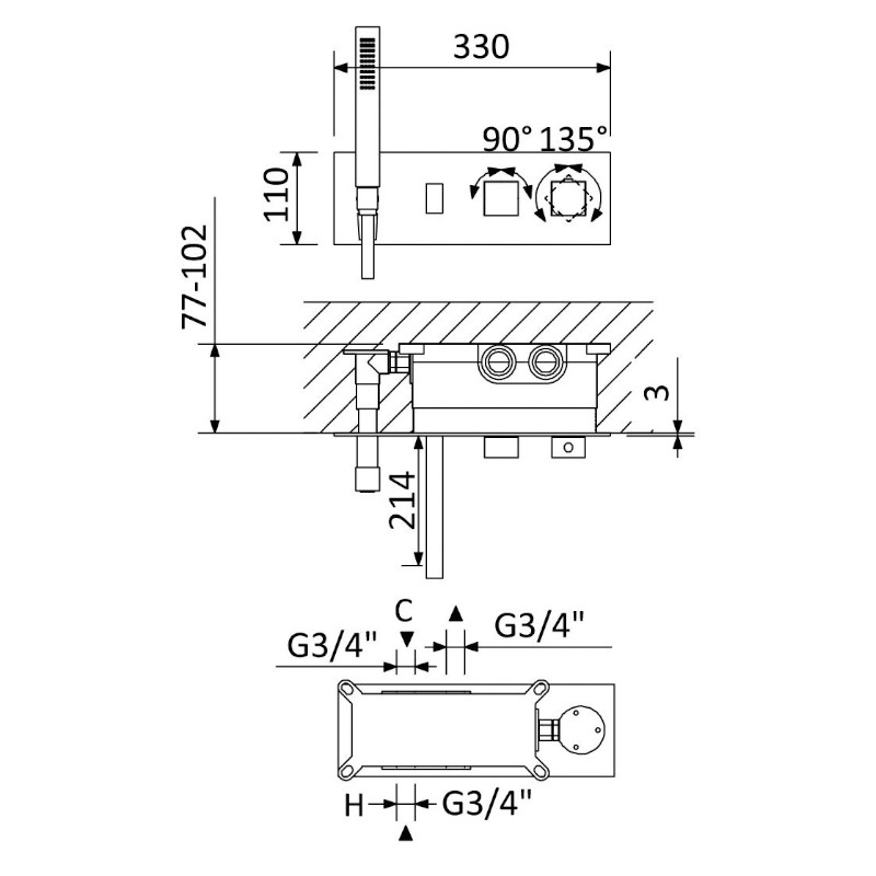 Bateria 2-drożna, termostatyczna, podtynkowa z wylewką, słuchawką i elementem podtynkowym w zestawie.