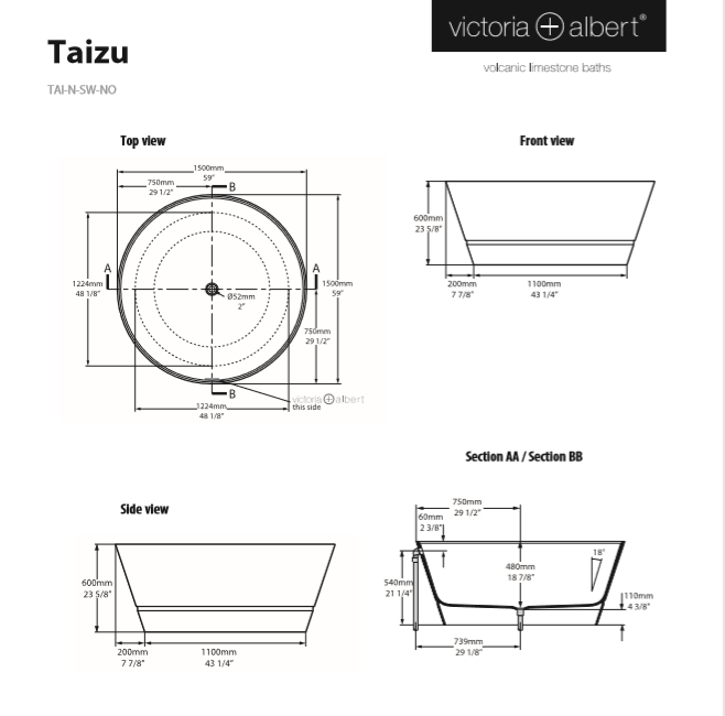Victoria+Albert Taizu Wanna Wolnostojąca 150x150 cm Biały TAI-N-SW-NO