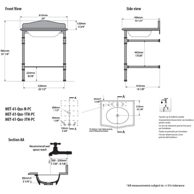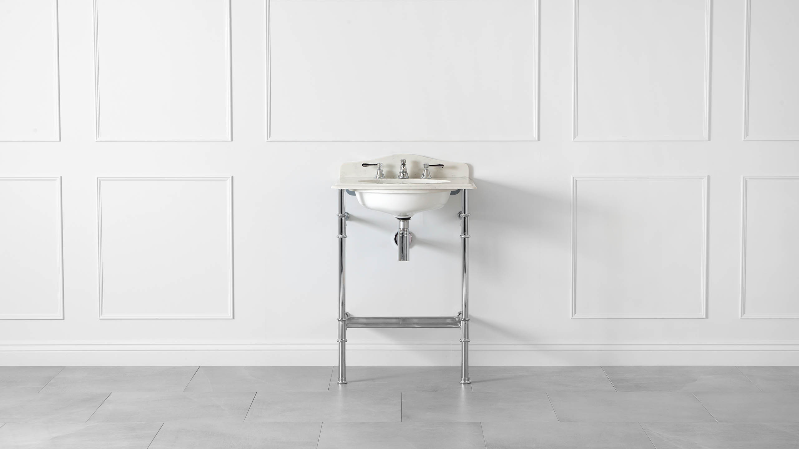 Victoria+Albert Metallo 61 Quartz Stolik z zintegrowaną umywalką 61x50 cm trzy wybite otwóry Polerowany chrom&biały MET-61-QWH-3TH-PC