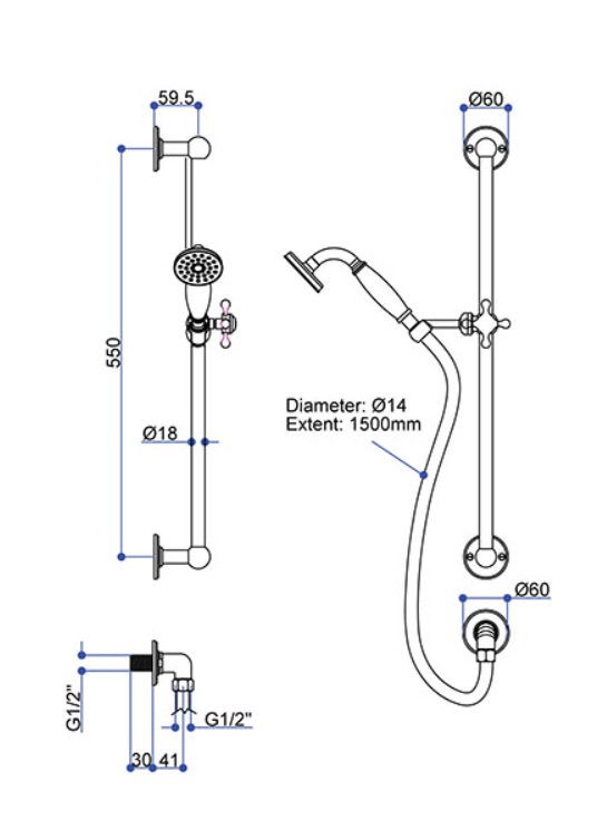 Burlington Drążek prysznicowy ze słuchawką, wężem i kolankiem ścienny chrom V12