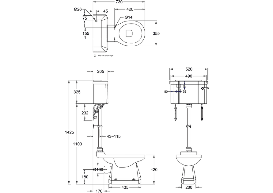 Burlington Spłuczka ceramiczna z rączką 51cm, Biała Medici C1M