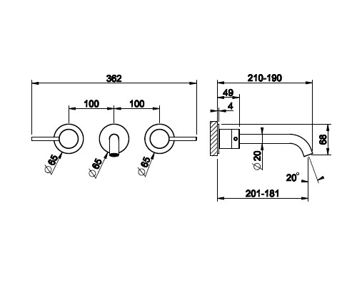 Gessi 316 Flessa Bateria umywalkowa 3-otworowa ścienna element zewnętrzny steel brushed 54094.239
