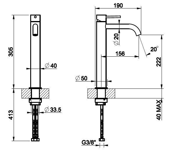Gessi 316 Intreccio Bateria umywalkowa jednootworowa bez korka steel brushed 54106.239