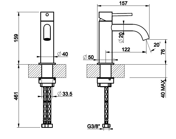 Gessi 316 Meccanica Bateria umywalkowa jednootworowa bez korka steel brushed 54202.239