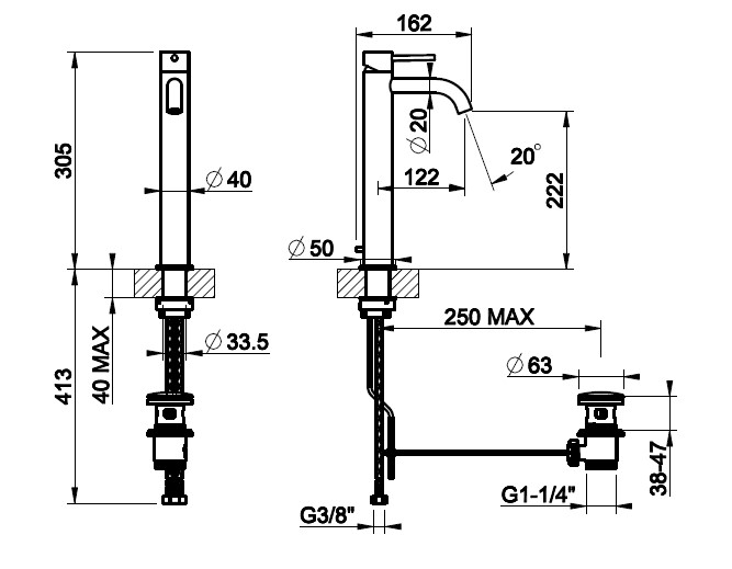 Gessi 316 Meccanica Bateria umywalkowa jednootworowa z korkiem steel brushed 54204.239