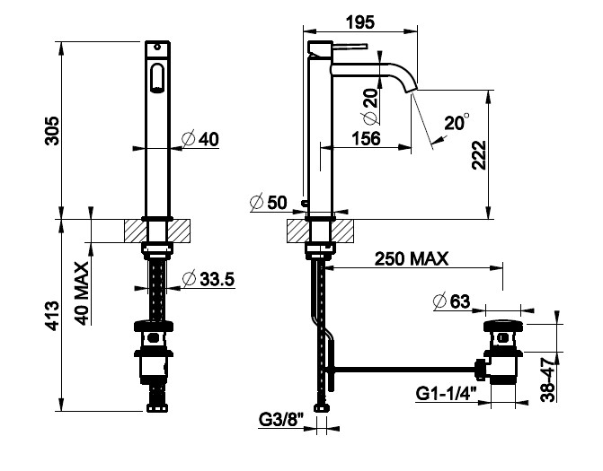 Gessi 316 Meccanica Bateria umywalkowa jednootworowa z korkiem steel brushed 54203.239